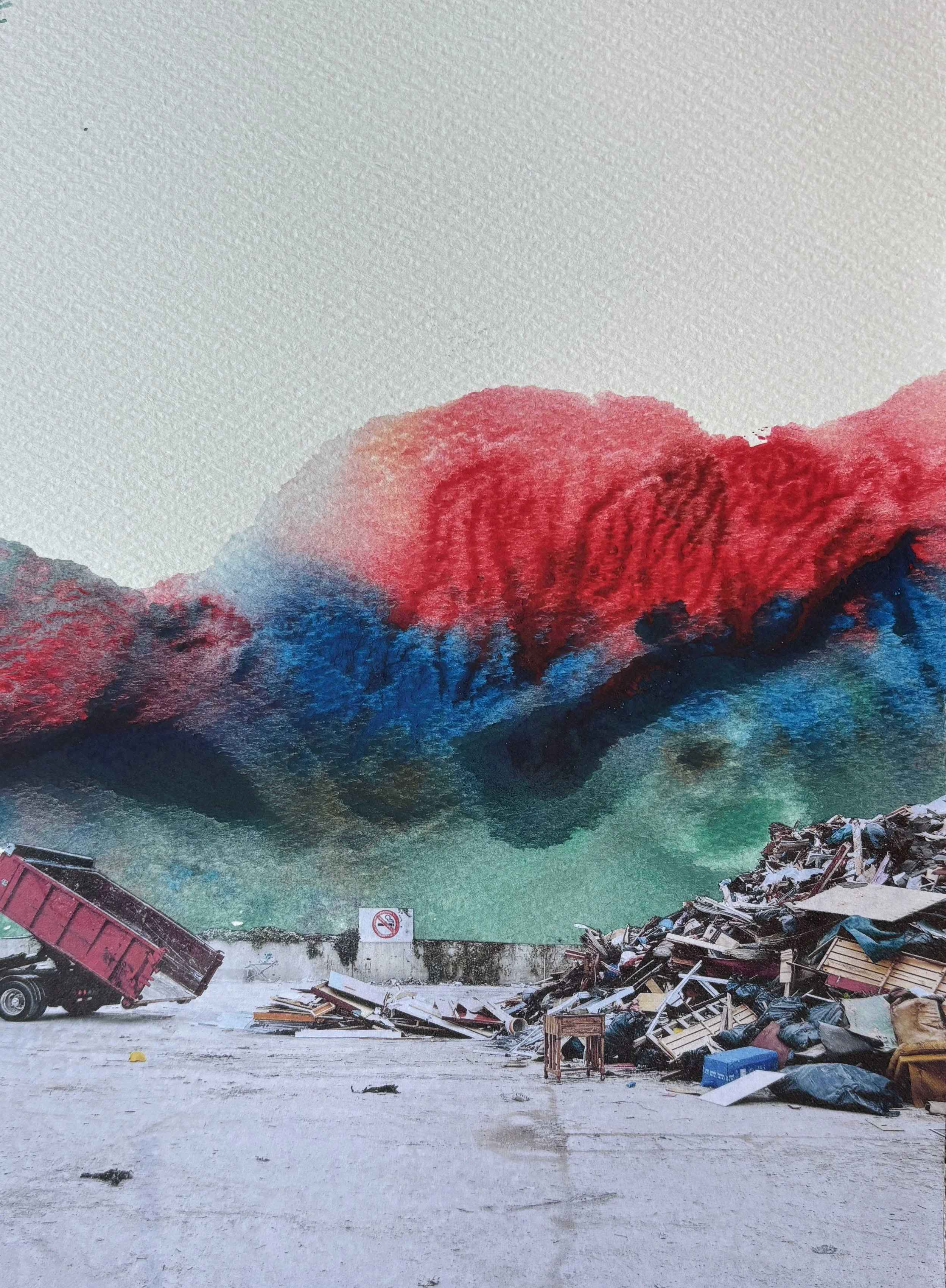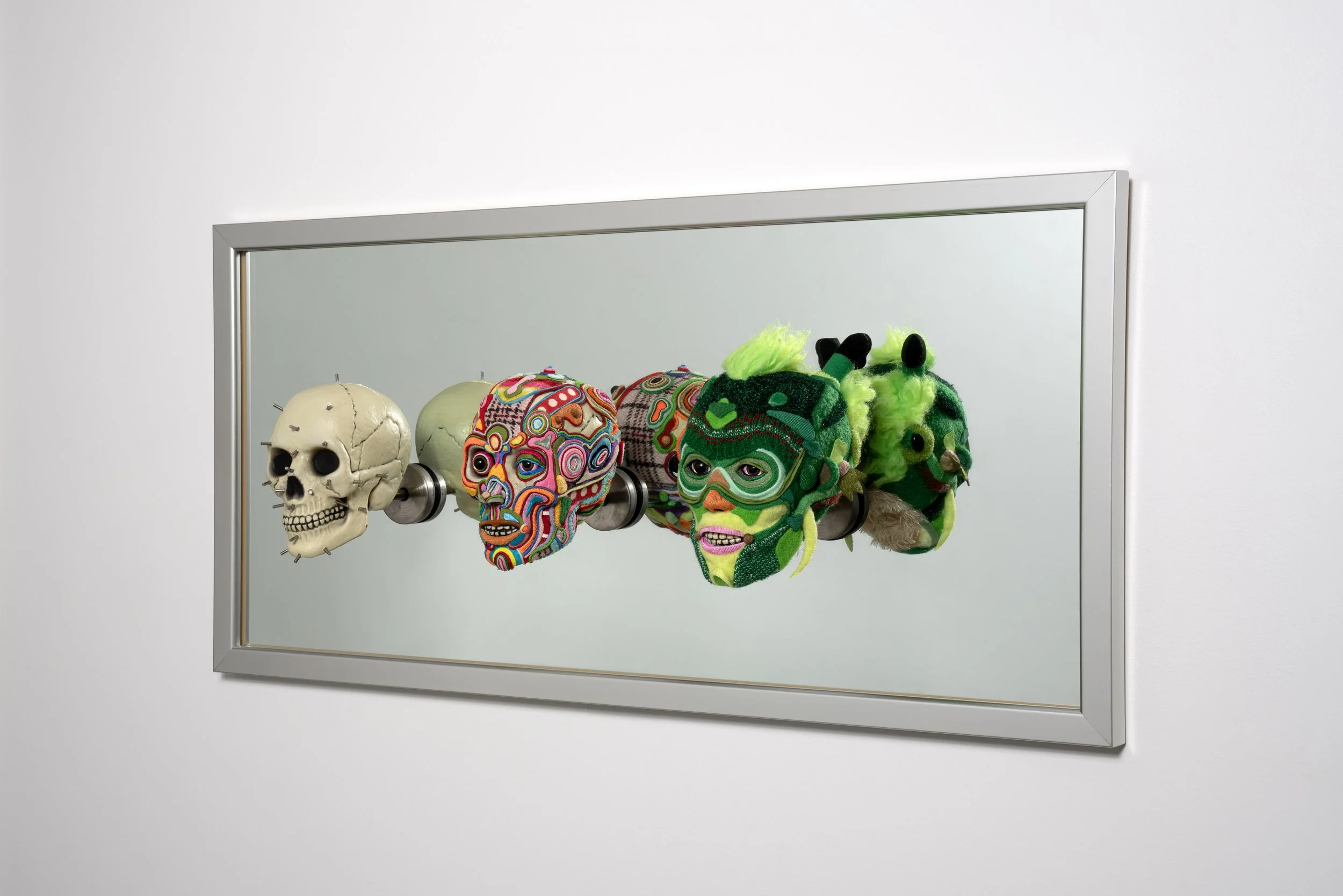 Painted paper, plaster, wire, polyester sheet, inkjet prints, enamel, pastel, dry pigments