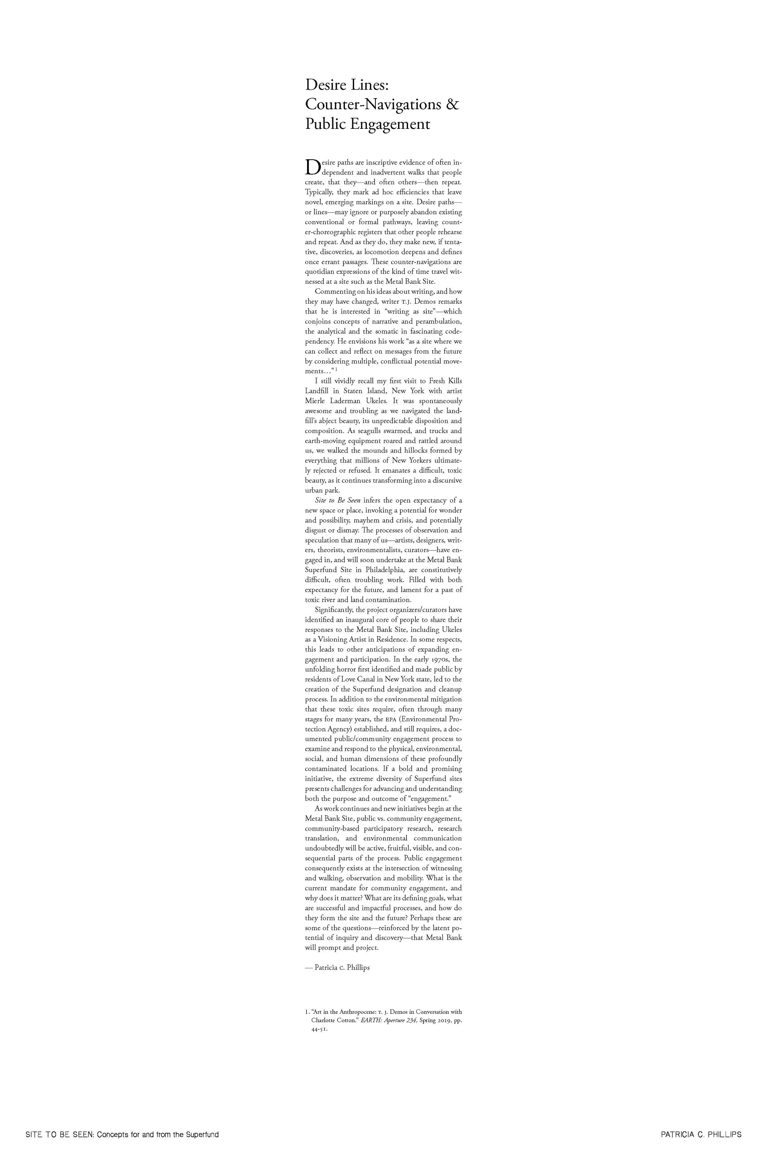 A Site to be Seen: Concepts for and from the Superfund is a project designed to frame and introduce the varied ecological, artistic, social and cultural potentials of the remediated Superfund site known as Metal Bank which is adjacent to RAIR. The Metal Bank Site, a former scrap metal salvage facility, was contaminated with PCBs in the 1970s.