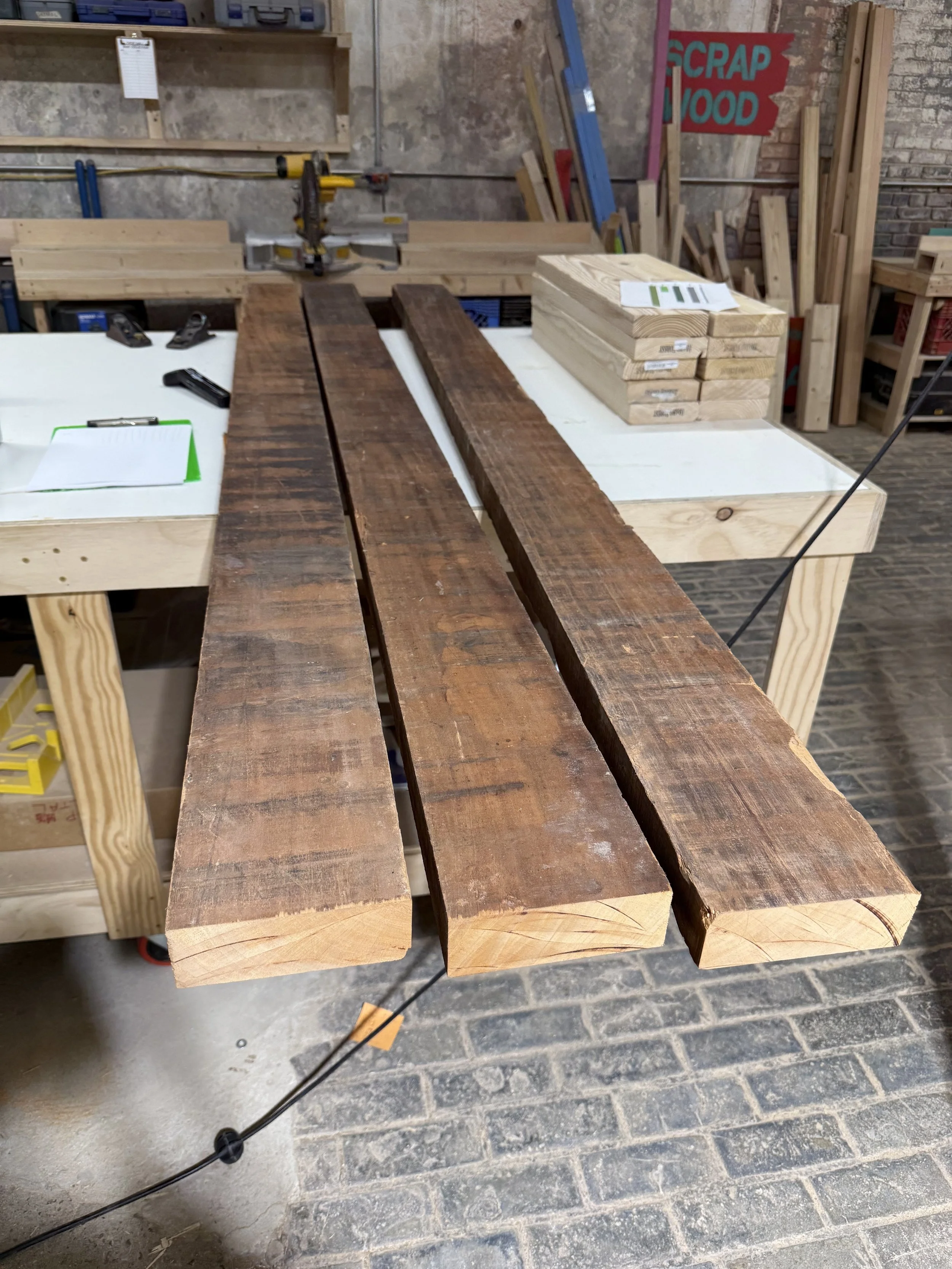 Through RAIRS partnership with TinyWPA, they have been able to curb materials costs for thier community program called the Bulding Heros program. Once selected these community memebrs are provided with a range of material for thier personal and communal projects. Below you can see a Bulding hero creating a tabletop from wood sourced by RAIR.